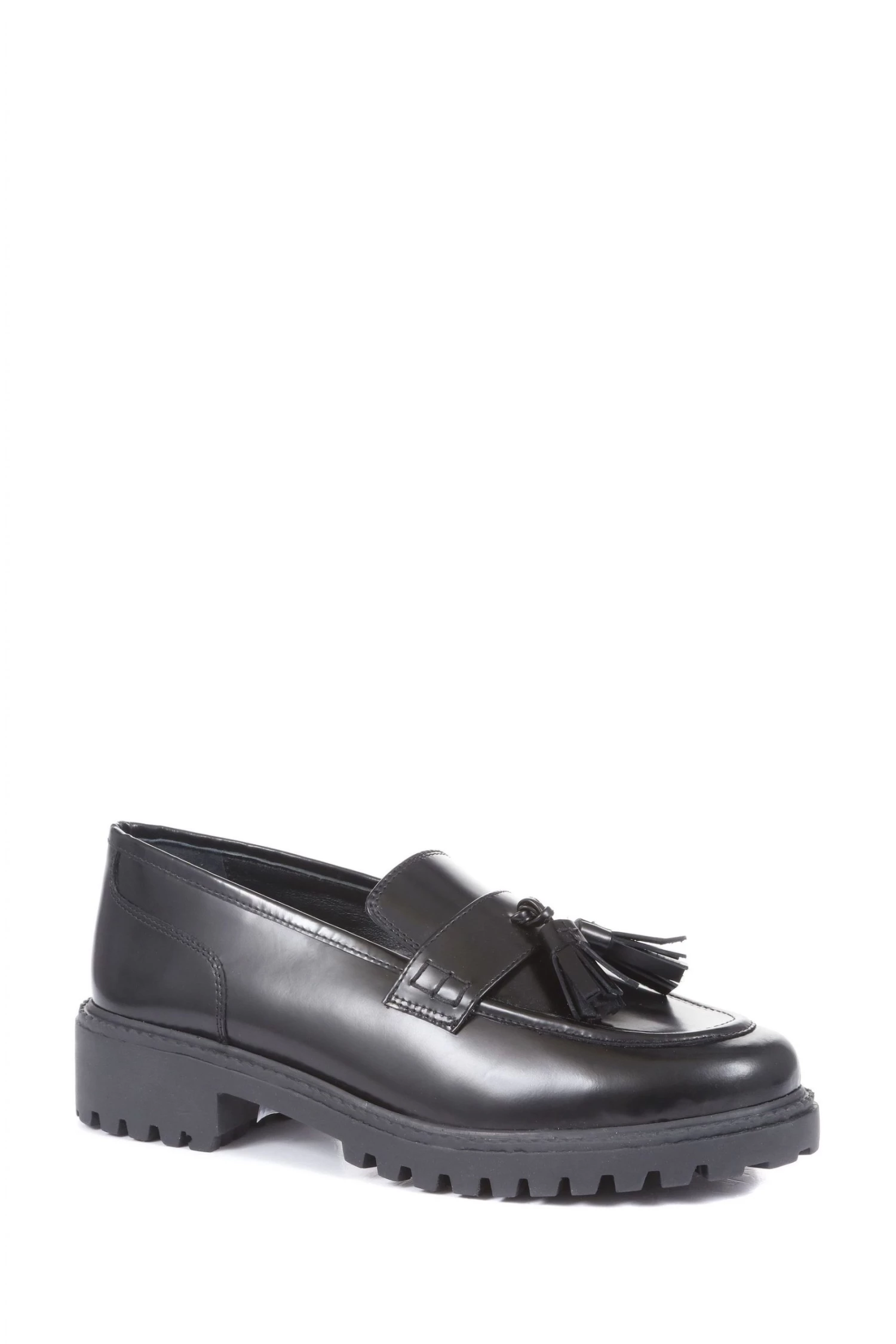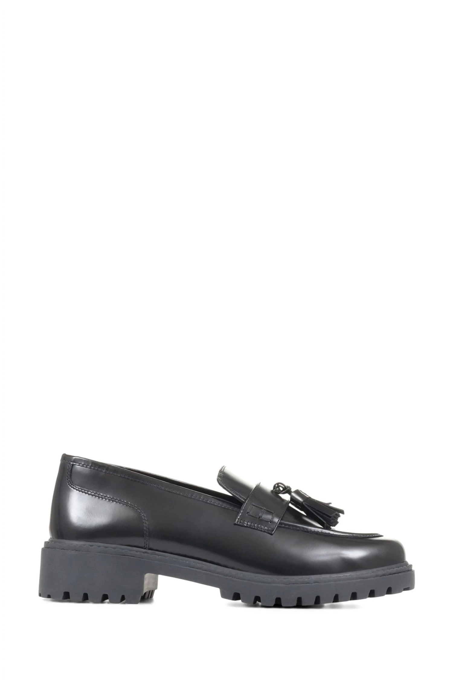 Love’s larger than life attitude will supercharge your workwear rotations. Styled as a classic slip on loafer, this pair is crafted in slick black leathers and embellished with a duo of leather tassels. Set atop a chunky platform sole, these loafers offer a heavy duty update for your footwear collections, slip them on with your tailored separates to amplify your smart looks.