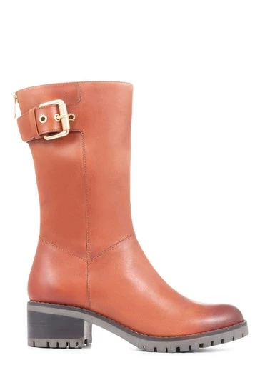 A sleek and elegant choice, Lacee is the wear-with-everything leather boot. Perfect for teaming with floral midi dresses on warmer days and jeans and cable knit jumpers come the big chill, these classic leather boots will see you through a whole host of occasions. Styled in a simple profile, the boots are only decorated by a metallic buckle at the side and a small faux zip at the back of the boot. Lined with a leather insock for comfortable wear, the boots feature a full length inside zip for effortless put on and are layered upon combat-inspired treads for traction underfoot.